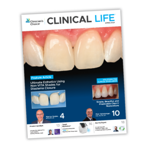 Sign up for the Clinician’s Choice e-newsletter to receive new product announcements, clinical techniques, Thought leader supported video content, opportunities for continuing education, and much more!