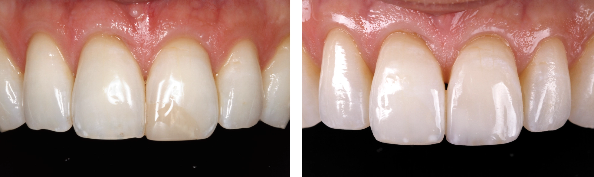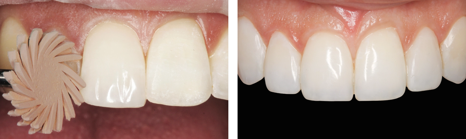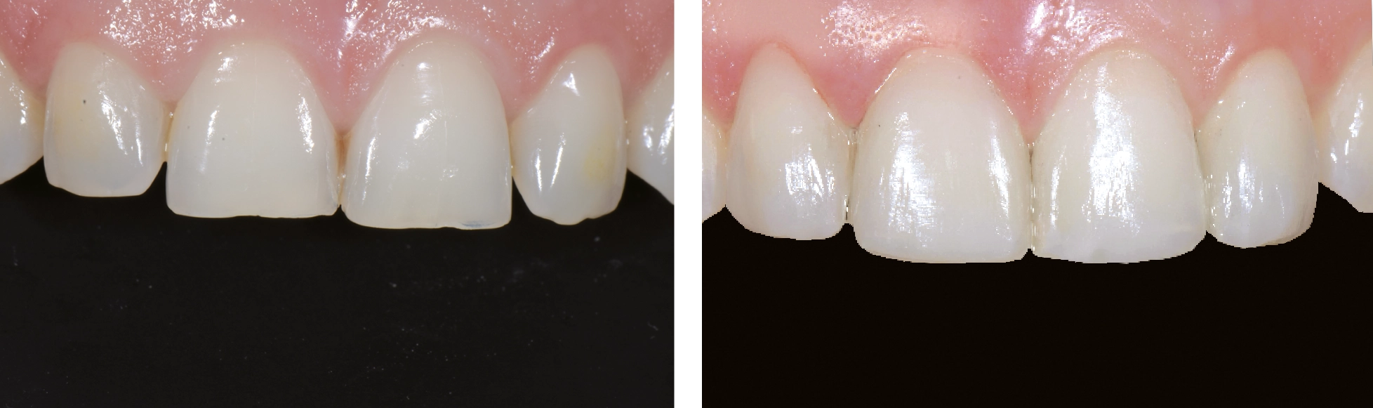 “Evanesce is available in the most popular VITA shades with three opacity options: Enamel, Universal and Dentin. The material also comes in three “Enamel FX” shades: White, Incisal and Clear along with two bleach shades for additional shade matching precision. Evanesce’s opacity selection allows for a more enhanced and excellent esthetic result that disappears into the existing tooth surface.” – Dimple Desai, DDS, AAACD