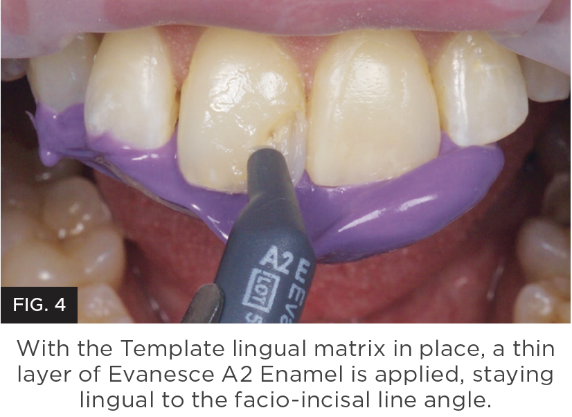 Template® Ultra Quick Matrix Material from Clinician’s Choice® is a silicone material designed to make highly detailed provisionals; however, its fast working and set times (30s and 30s), in addition to its accuracy, make it a perfect choice for this lingual matrix technique. Utilizing the Template lingual matrix technique dramatically reduces procedure time, provides the ideal lingual/embrasure contours, and leaves a pre-polished lingual surface.