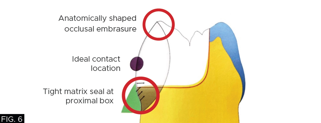 Proper use of a sectional matrix system (e.g. DualForce™ Sectional Matrix System, Clinician’s Choice®) ensures tight and anatomically correct proximal contacts. Proximal and occlusal embrasures should allow for self-cleansing by the tongue and gingival embrasures that are anatomically shaped to prevent food impaction and periodontal irritation.