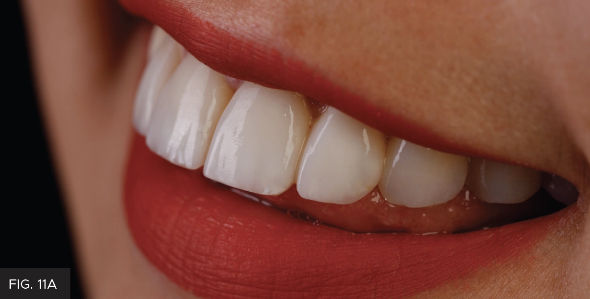 While the esthetic improvements are usually limited to dentition, their effect on the patient’s demeanor is clearly demonstrated in the picture. (FIG. 11A and 11B) This creates a rewarding experience for the patient and clinician, both eager to share it with others.
