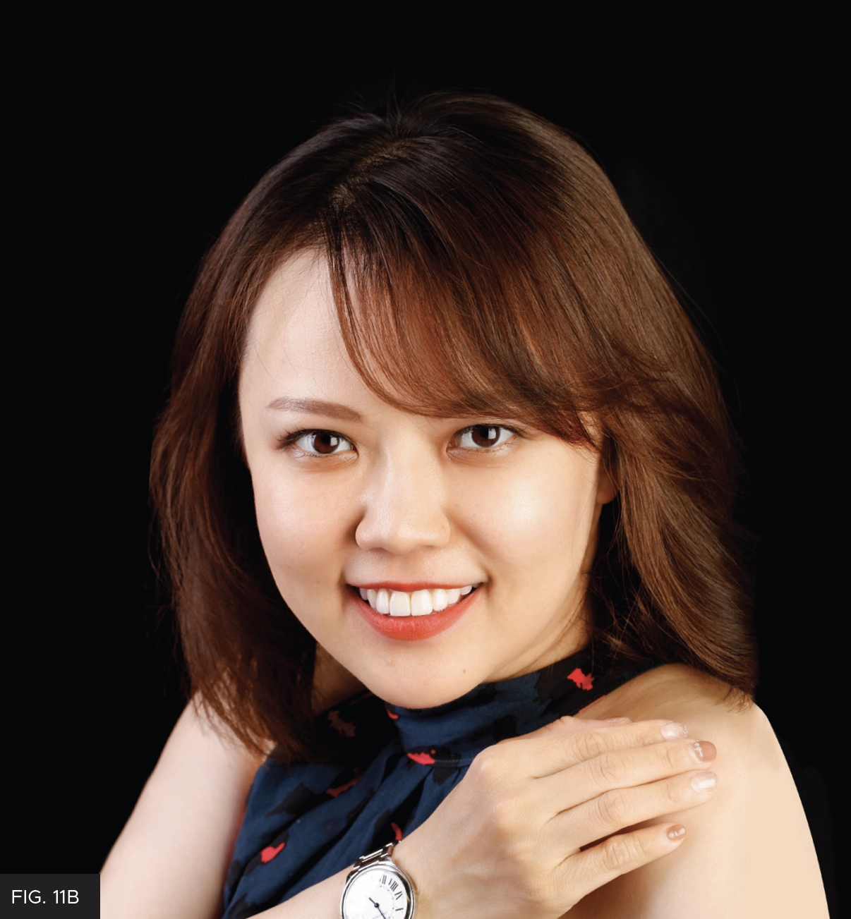 Predictable, highly esthetic composite dentistry is consistently achievable with a commitment to following an established workflow. Clinicians can reduce stress when an esthetic restorative outcome is anticipated based on workflow. The advantage of minimally invasive esthetic dentistry is possible without compromising a long-term result. More patients are looking for this option and looking for dentists who offer this service. This patient was overwhelmed with her new smile. Post-op portrait photos are taken to capture the joy and confidence that these treatments bring about. (FIG. 10)
