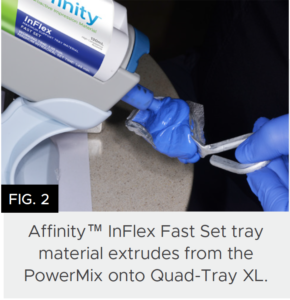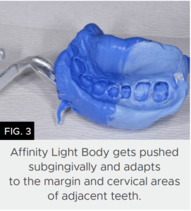 The case demonstrated is using Clinician’s Choice Affinity™ InFlex PVS Fast Set tray material (FIG. 2) with Affinity VPS Light Body Regular Flow Fast Set for a single crown impression. (FIG. 3)
