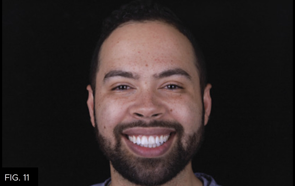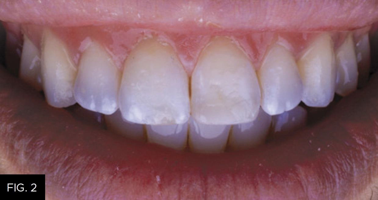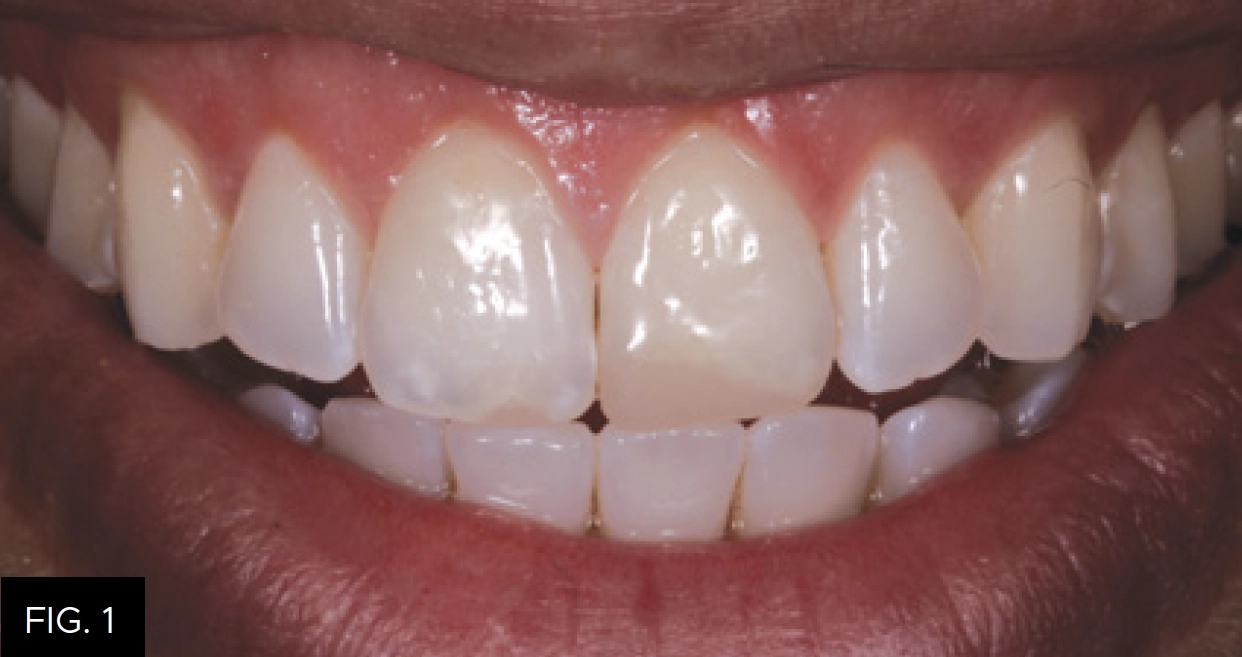 A young man presented with a long-standing Class IV composite restoration on tooth #9. According to the patient, the shade and shape of which were never ideal. (FIG. 1) He was seeking a more esthetic outcome and was open to the best restorative solution.