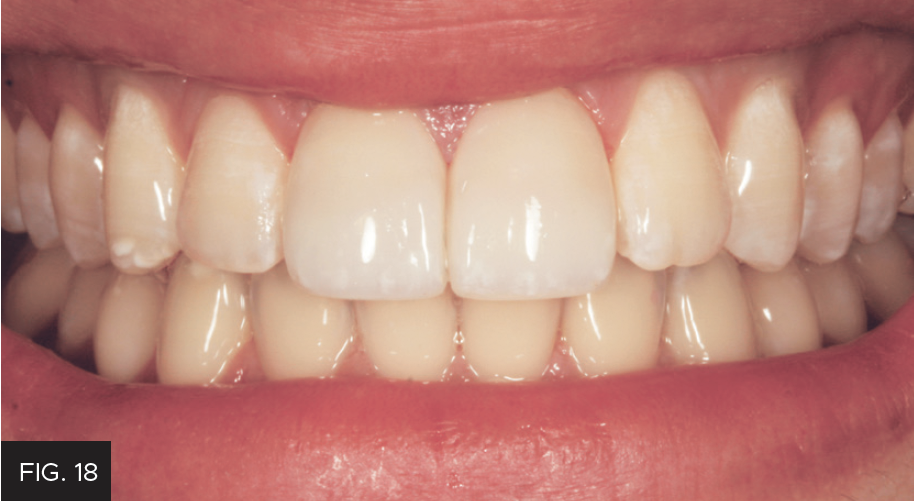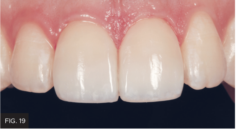 By adhering to concepts of using composites to control the shade/opacity and the workflow of how to shape/finish as seen in this case, the clinician can use the tools discussed to create anterior composite restorations that mimic the beauty of natural tooth structure predictably every single time! (FIG. 18 and 19)